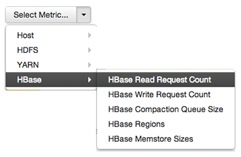 A colored block represents each host in your cluster. To see more information about a specific host, hover over the block representing the host in which you are interested. A pop-up window displays metrics about HDP components installed on that host. Colors displayed in the block represent usage in a unit appropriate for the selected set of metrics. If any data necessary to determine state is not available, the block displays "Invalid Data". Changing the default maximum values for the heatmap lets you fine tune the representation. Use the Select Metric drop-down to select the metric type.