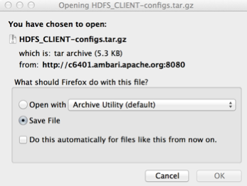 For Services that include client components (for example Hadoop Client or Hive Client), you can download the client configuration files associated with that client from Ambari.