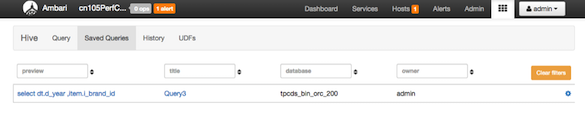 The Saved Queries tab shows all the queries that have been saved by the current user. Click the gear icon to the right of the query list to view the history of a query or to delete it: