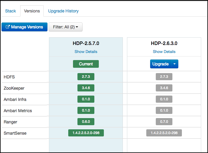 Verify that you can see both ranger versions (in different folders under /usr/hdp) before the upgrade: