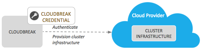 Cloudbreak credential allows Cloudbreak to authenticate with the cloud provider and create resources on your behalf. The authentication process varies depending on the cloud provider, but is typically done via assigning a specific IAM role to Cloudbreak which allows Cloudbreak to perform certain actions within your cloud provider account.