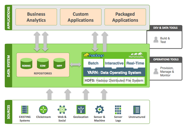 YARN provides a broader array of possible interaction patterns for data stored in HFDFS, beyond MapReduce; thus, multiple applications can be run in Hadoop, sharing a common resource management. This frees MapReduce to process data.