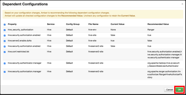 8. After Hive restarts, the Ranger plugin for Hive will be enabled.