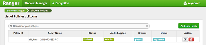 (keyadmin) to manage access policies and keys for Ranger KMS.