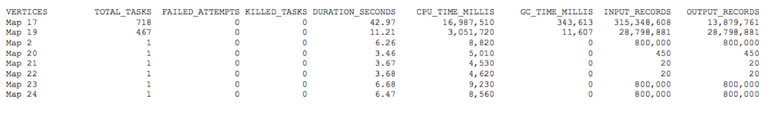 1. Sometimes garbage collection inside the Java Virtual Machine can take up a substantial portion of the total execution time. Check garbage collection time against the CPU time by either enabling hive.tez.exec.print.summary, or by checking the Tez UI: