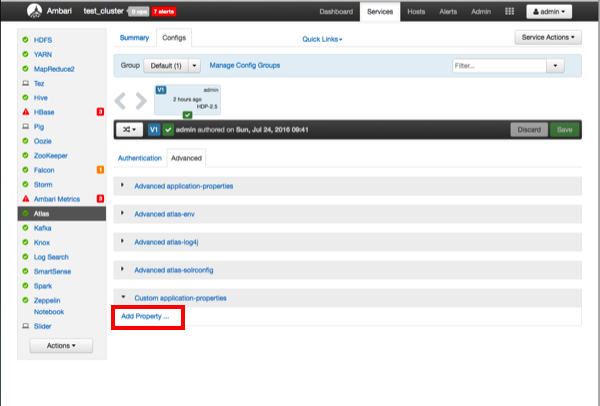 Select Atlas > Configs > Advanced > Custom application-properties, then click Add Property.