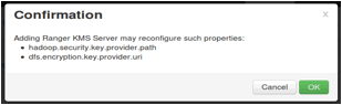 After adding Ranger KMS server, Ambari will show a pop-up message.