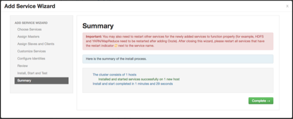 When the installation is complete, a Summary page displays the installation details. Click Complete to finish the installation.
