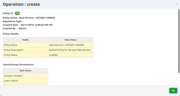 To view details on a particular operation, click the Policy ID, Operation name, or Session ID.