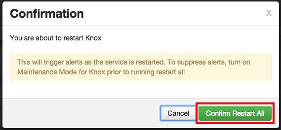 7. Click Confirm Restart All on the confirmation pop-up to confirm the Knox restart.
