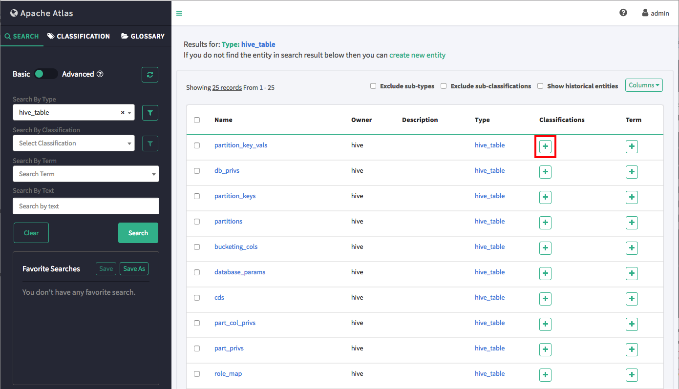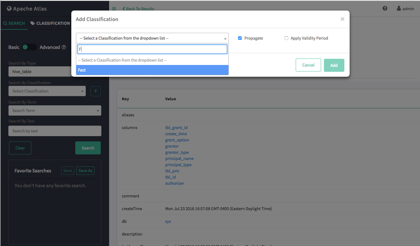 hive_tableentities, and then selected the "tbl_privs" table from the list of search results. To associate a classification with an entity, click the + icon next to the "Classifications:" label.