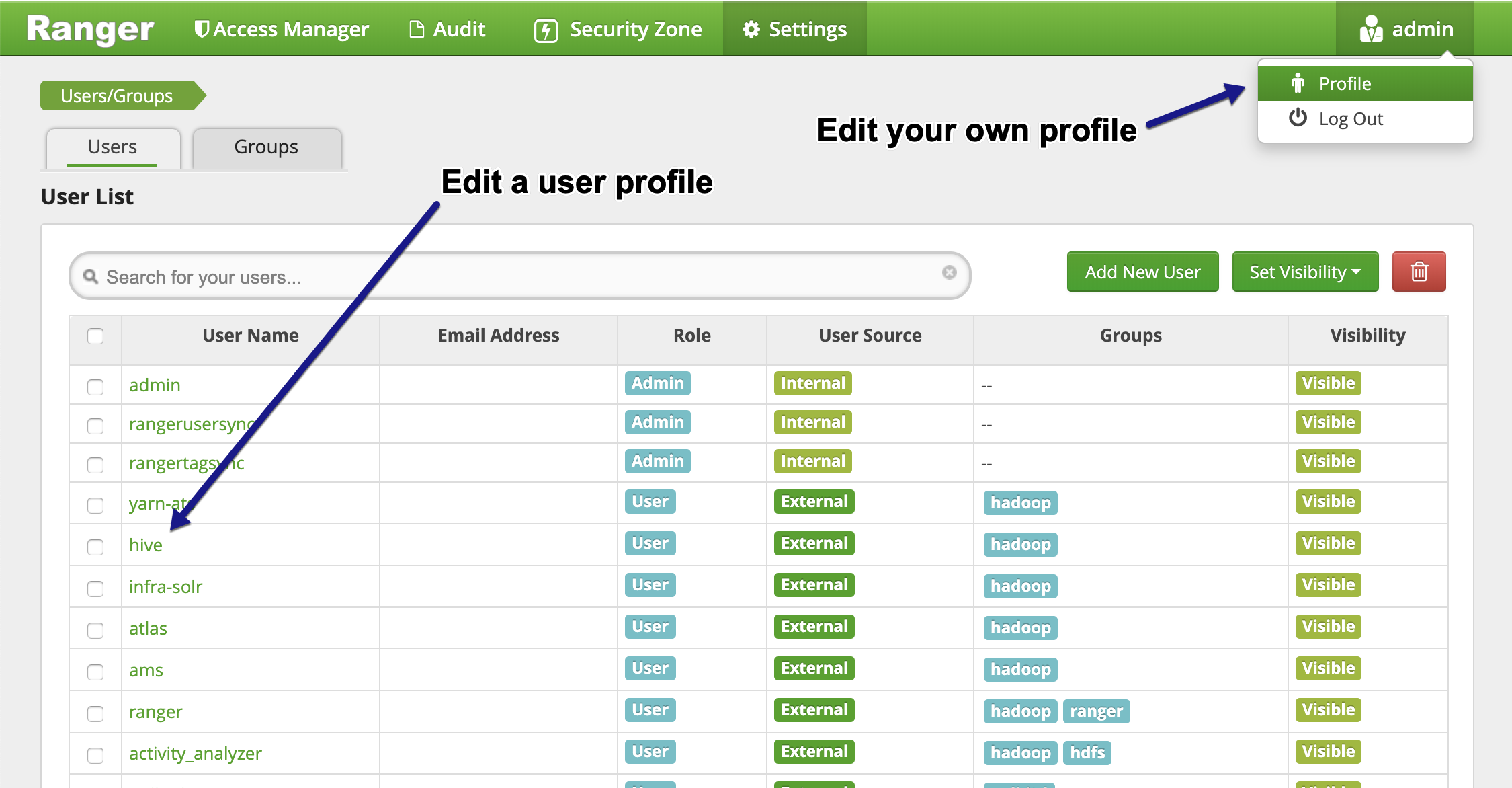 How to edit a user in Ranger.