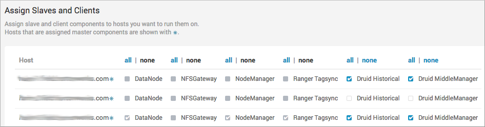 In Assign Slaves and Clients, putting Druid Historical and Druid MiddleManager